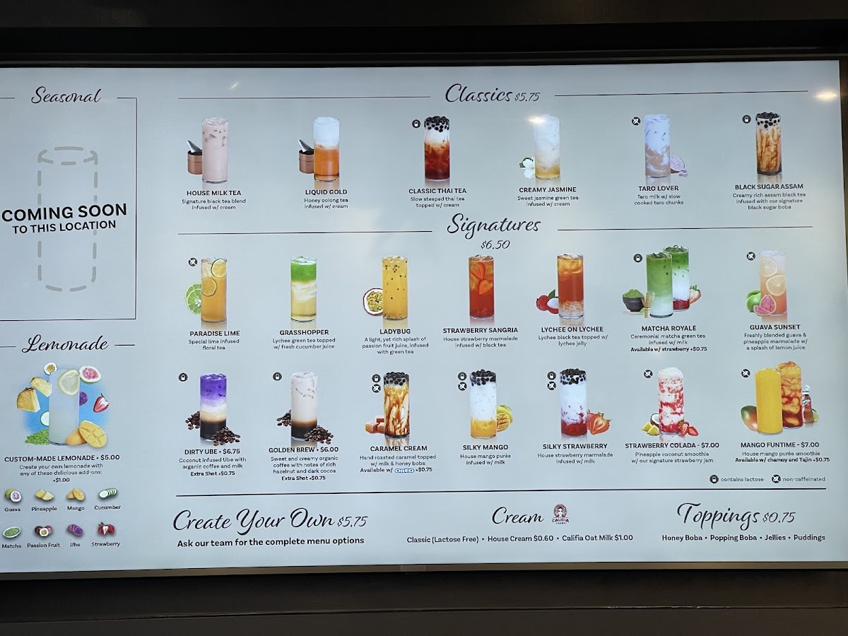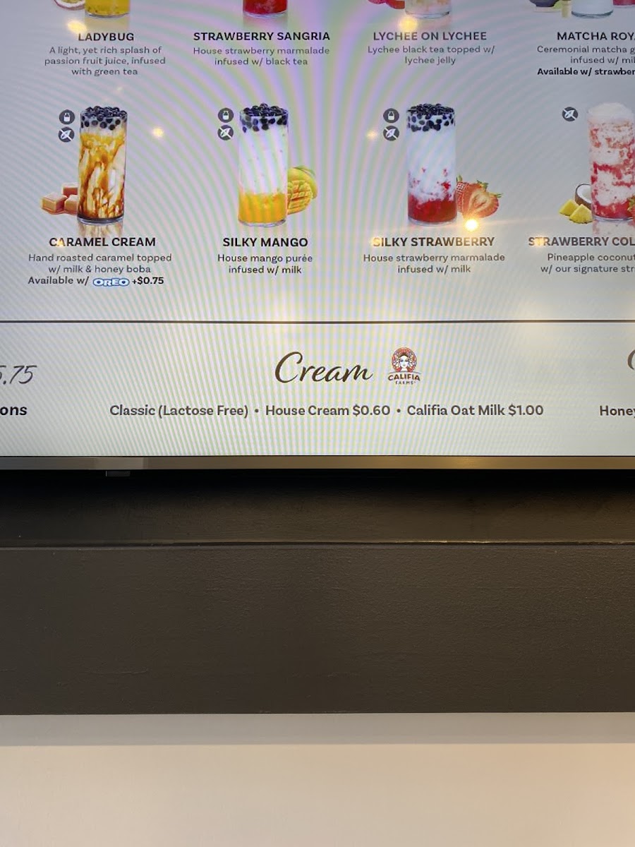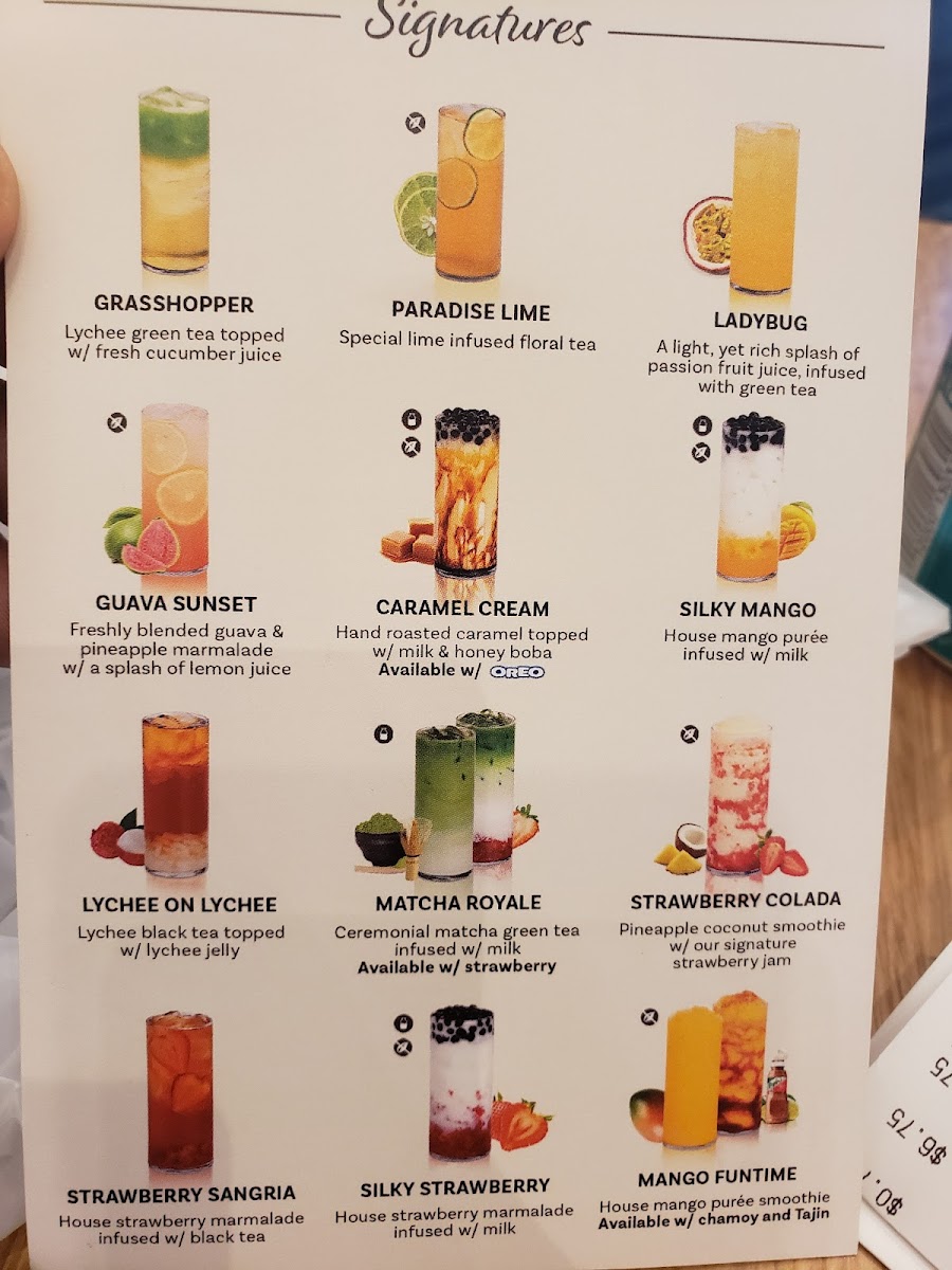 House mango purée infused w/ milk & honey boba. 480 Cal.